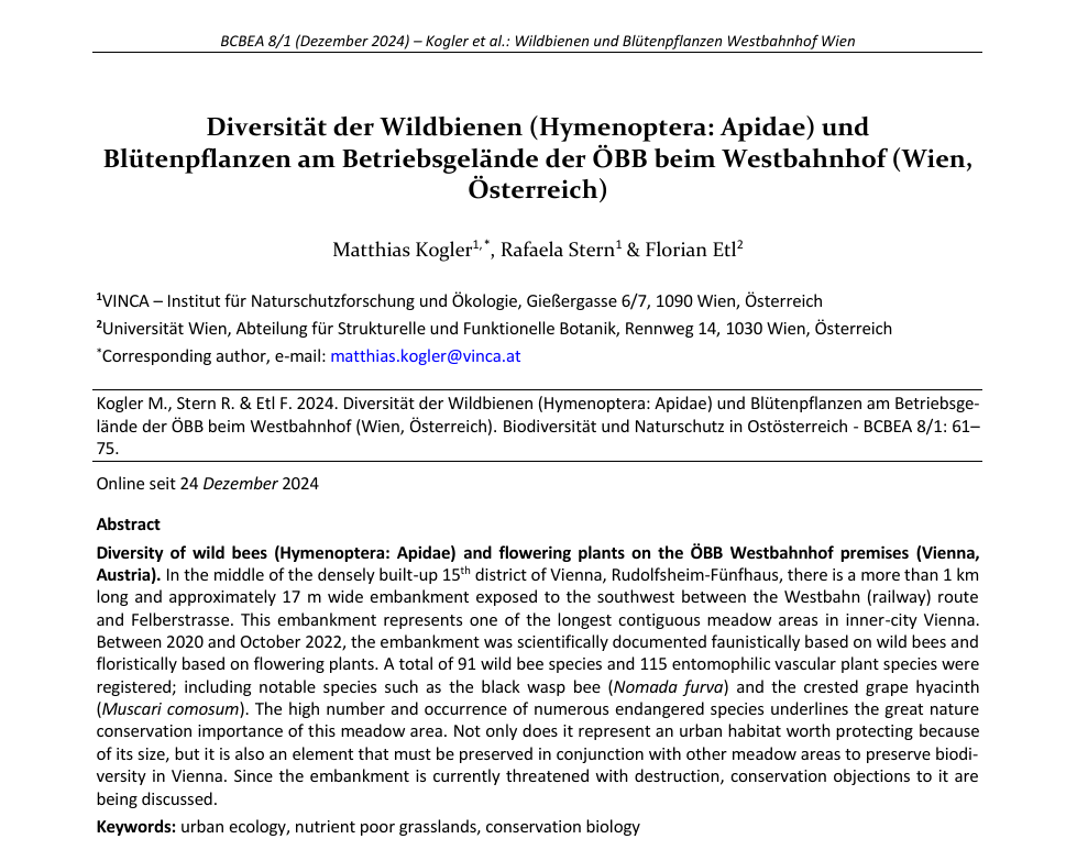 Den Menschen und der Opposition einerseits keine detaillierten Informationen zur Verfügung zu stellen und sich dann darüber zu beschweren, dass diese selbige nicht gelesen haben scheint wie ein besonderer Treppenwitz. Alle vorhandenen Unterlagen deuten auf eine Verbauung und intensive wirtschaftliche Nutzung des Geländes hin. Der Grünhang mit hoher Bedeutung mit Blick auf die Biodiversität scheint fast vollständig abgetragen zu werden. In einer aktuellen Studie (2024) wurden hier 91 Wildbienenarten, davon 1 sehr selten und 11 selten, sowie 115 Blütenpflanzenarten, wovon 2 als streng geschützte Arten in Wien gelten, gefunden. (Quelle: Kogler, Stern, Etl 2024: Diversität der Wildbienen und Blütepflanzen am Betriebsgelände der ÖBB beim Westbahnhof)