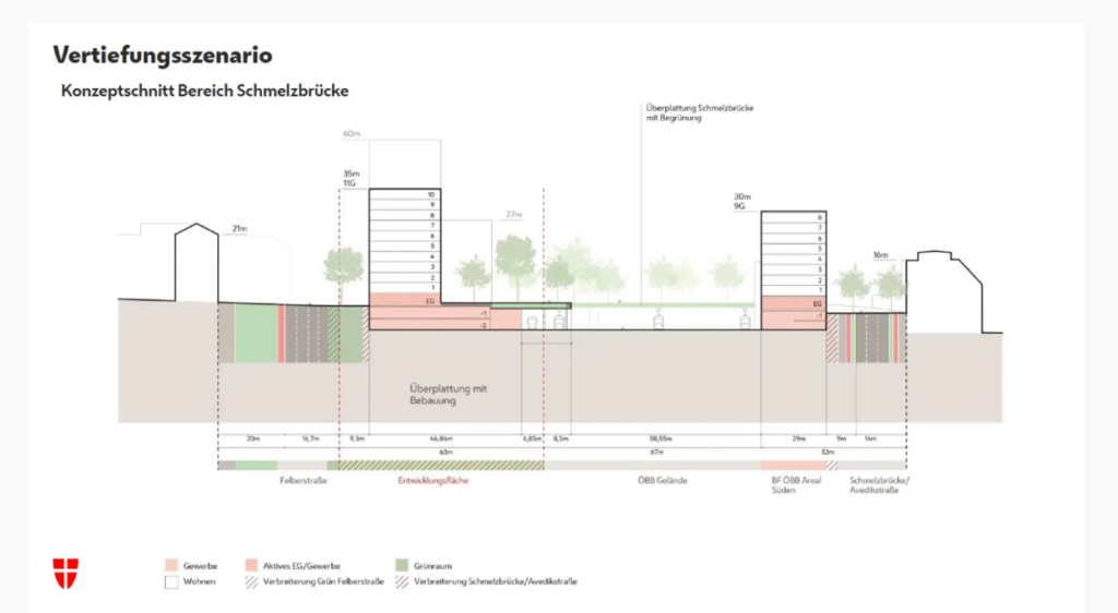 - Die Umsetzung ist frühestens ab 2030 möglich, weil die ÖBB die Flächen unter anderem bis dahin noch für Bau- und Betriebszwecke benötigt.