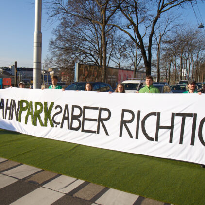 Grüne Aktion gegen Betonprojekt und für einen richtigen Park am Westbahngelände